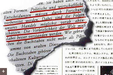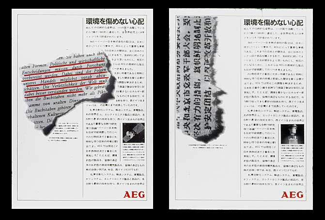 Die Aufgabenstellung: Entwicklung einer Imagekampagne, die deutlich macht, welche technologischen und umweltpolitischen Gedanken bei der Entwicklung von AEG-Produkten eine Rolle spielen: Zitate wichtiger Persönlichkeiten des öffentlichen Lebens. In diesen werden hohe Anforderungen an die Gesellschaft und die Unternehmen gestellt. Die Antwort von AEG: Wir haben es bereits berücksichtigt.