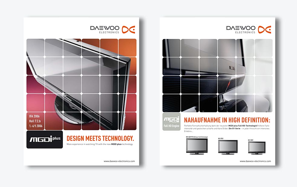 Daewoo Electronics Europe 2006 und 2007 – Anzeigen und Großplakate im Rahmen der IFA