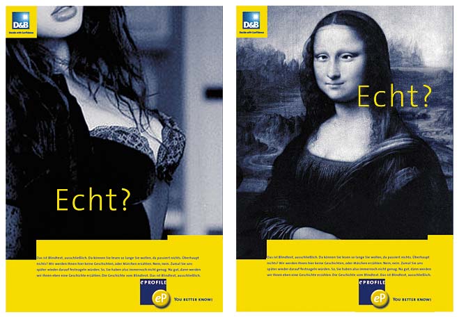 Entwicklung einer Anzeigenkampagne für Endverbraucher. Der Abruf wichtiger Wirtschaftsinformationen, z.B. ob der Kunde zahlungskräftig ist, leicht gemacht. eProfile. Informationen via Internet. |