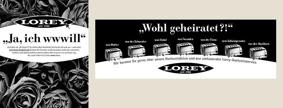 Lorey, Frankfurt Entwicklung einer Anzeigenkampagne zum Thema: Hochzeitstisch