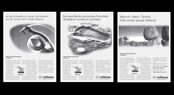 Lufthansa reklamiert für sich den höchsten Anspruch. Nicht nur die Produkte und Flugzeuge müssen internationaler Top-Standard sein – auch bezogen auf die Unternehmensehtik will Lufthansa führend sein. Innovation hat nicht nur etwas mit neuen Flugzeugen zu tun. Sie ist vielmehr Ausdruck von neuen, mutigen Gedanken. Nur wer Dinge erdenken, oder besser erträumen, kann findet zu neuen Lösungen und zur inneren und äußeren Balance. Eins sein mit der Welt. |